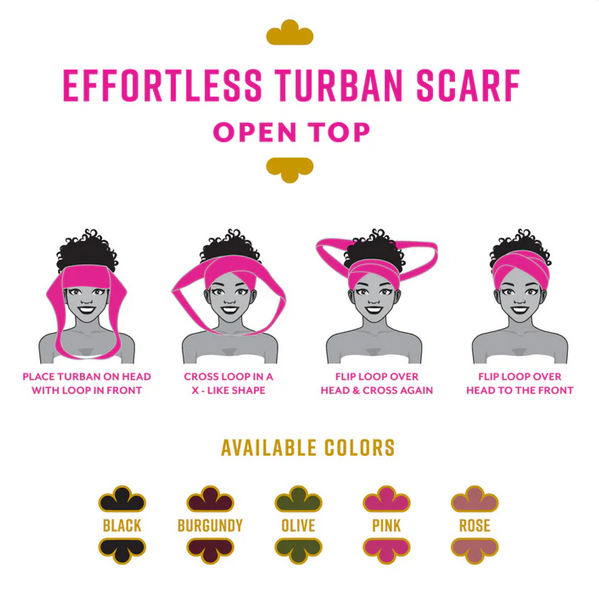Slip into instant elegance with the Ms. Remi Effortless Turban Scarf. This pre-tied open-top design wraps and secures in seconds—no styling expertise needed. The soft cotton exterior pairs with a luxe satin lining that feels gentle against your skin, while breathable, ultra-stretch fabric adapts to any head shape. Perfect for busy mornings, protective styling, or effortless everyday polish. One size fits most.