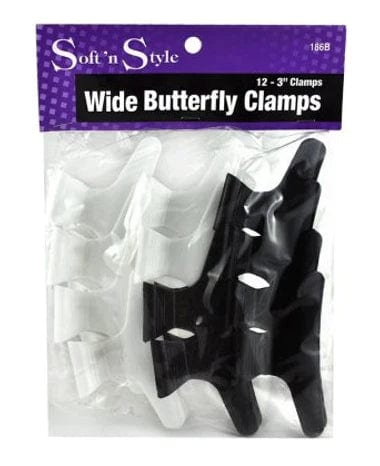These sophisticated butterfly clamps, crafted with premium materials to ensure both sturdiness and ease of use, are an essential for any professional stylist or salon. With a width of 3", they can effortlessly tame even the most rebellious locks. Each pack includes 6 black and 6 white clamps, with an ergonomic design that provides a soft, secure grip without the risk of pulling or tugging. From crafting intricate updos to keeping hair out of the face, the Soft 'n Style Butterfly Clamp is the perfect choice.