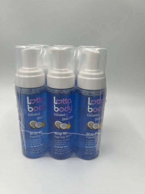 Get ready to say hello to perfectly styled hair with our 6 PACK LOTTABODY COCO&SHEA WRAP ME FOAMING MOUSSE 7OZ. Infused with the nourishing power of coconut and shea, this mousse gives you long-lasting hold and shine. Say goodbye to bad hair days, and hello to fabulous hair!