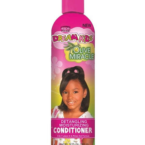 Get tangle-free hair with African Pride Dream Kids Detangling Moisturizing Conditioner. This conditioner can be used as a regular conditioner or a daily leave-in conditioner. It is great for getting out those hard-to-comb knots and making the hair more manageable for styling. Formulated specifically for a child's gentle scalp, this product instantly conditions the hair making it soft and shiny. -- Features: