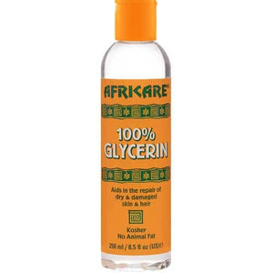 Let Africare’s 100% Glycerin take care of your skin and hair. Made from natural glycerin, it aids in the repair of dry and damaged skin and hair. It conditions and protects while adding needed moisture to your hair. Kosher glycerin contains no animal by-products. Use it daily and see the difference! -- Features: