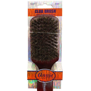 Brushing through your hair doesn’t have to be a hassle! Use Annie’s Soft Club Brush to detangle your hair effortlessly. Made with 100% Boar Bristles, this natural wooden brush holds hair better to distribute your natural oils for beautifully nourished scalp and hair. With soft bristles that are easy on your hair, you can look and feel your best. -- Features: