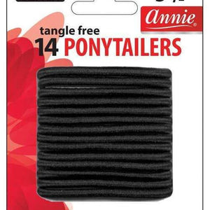 Get the best hold without the tangles with Annie Tangle Free Black Ponytailers. These ponytailers are made with super-stretchy elastic so that they will be extremely gentle on your hair and scalp. They are 5 ½” in diameter and will firmly hold your hair back no matter the thickness. These are great for ponytails, buns, braids, and updos. There are 14 ponytail holders per pack. -- Features:
