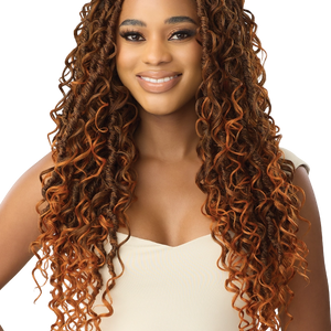Experience effortless style with X-Pression Twisted Up Boho Gianna Locs in 20-inch length. Crafted from 3X premium synthetic fiber, these locs offer a soft, lightweight feel that stays comfortable all day. Their natural twist and passion twist design delivers a trendy, boho look while remaining nonflammable for added safety. Perfect for those seeking easy, durable, and stylish protective hairstyles.