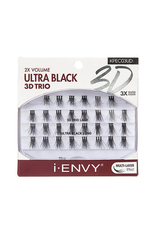 Double the volume and enhance the drama in your eye looks with these 3D multi-layer trio lashes! They can be used sparsely for a natural effect, or use more for a flared look. These customizable lashes will add wispy intensity to your lash line! Available in classic black, ultra-black and medium or long length. -- Features: