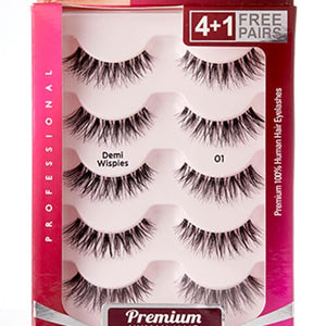 Demi Wispies 01 will give your eyes a fluttery, feminine look with ease! With an invisible band for comfortable wear and easy application, this style lash will become your new go-to! The Wispy style tapers off towards the end for a natural but still glamorous look. The lashes have a unique criss-cross effect and are made from premium Human Hair for added realness. Comes in a 5 pack so you can stay stocked up! -- Features: