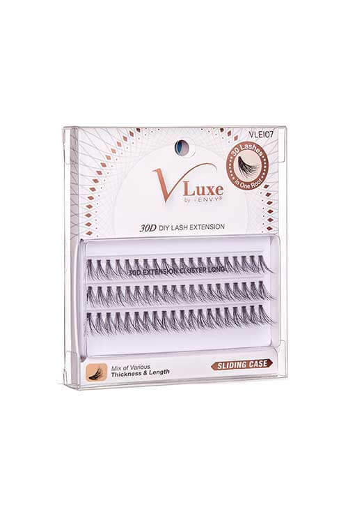 Compared to conventional individual lashes, V-Luxe 30D Extension Cluster Lashes’ finish is much fluffier, softer, and multi-dimensional. There are 30 hairs in each cluster made from various curls, thicknesses, and lengths to create the best salon extension look. The easy application means you can get the lash extension look right at home in about ten minutes! -- Features: