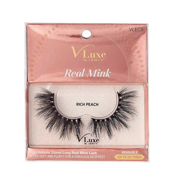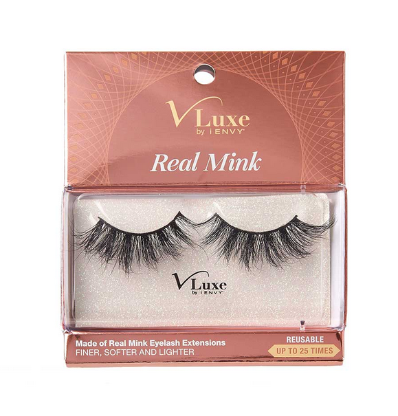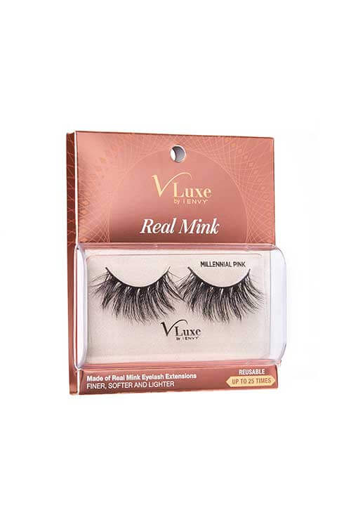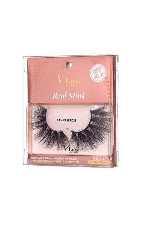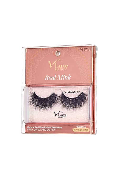 Choose from twelve plush styles of naturally tapered and lightweight lashes, made of real mink for a soft yet sultry look. Each lash has a reusable lifespan of up to 25 times and a natural lustrous sheen. For best results, handle with care and avoid tugging or ripping individual strands. After wearing, place in the V-Luxe eyelash case to preserve for future use. With proper care, these lashes can be reused up to 25 times.