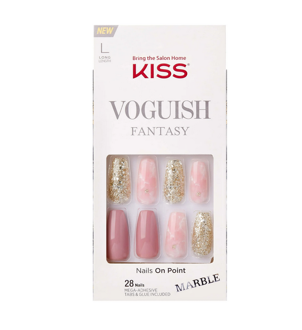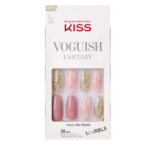 Elevate your nails with KVF08 KS VOGUISH FANTASY NAILS-ONLINE SHOPPER. Get trendy and stylish in no time with the latest fashion forward designs. Our long lasting, durable, and flexible fake nails are waterproof, smudge proof, and require no dry time. Hassle-free removal won't damage your natural nails. Kit includes 28 nails, pink gel nail glue, prep pad, mini file & manicure stick. Get high-fashion nails in minutes with results that look natural and last up to a week.