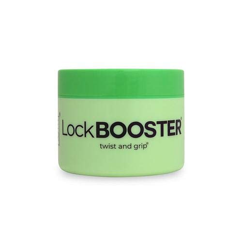 Achieve perfect twists, locks, and braids with Lockbooster Twist & Grip: a flake-free styling solution that tames flyaways, adds silky shine, and locks in your desired style for a lasting look. Apply a small amount onto your hands, run through hair, then style. Available in three variations for different hair needs, the green bottle features natural olive and peppermint oil to detangle and add shine. Caution: for external use only. Keep out of reach of children. Avoid contact with eyes. If irritation occurs, wash thoroughly with water.