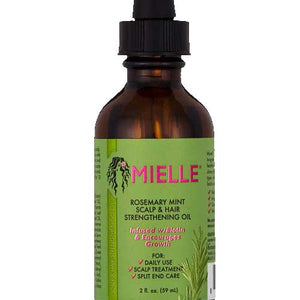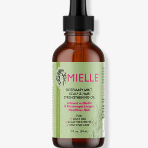 Encourage your hair to grow longer, stronger and healthier than ever before with Mielle Rosemary Mint Strengthening Hair Oil. Best for all hair types and textures, protective styles including braids and weaves and even for chemically treated hair. Infused with Biotin, Rosemary and 30 other essential oils and nutrients, this oil helps with improving length retention, conditions the scalp and even invigorates and nourishes hair follicles. Apply a small amount on a daily basis or as needed for stronger and healthier hair. -- Features: