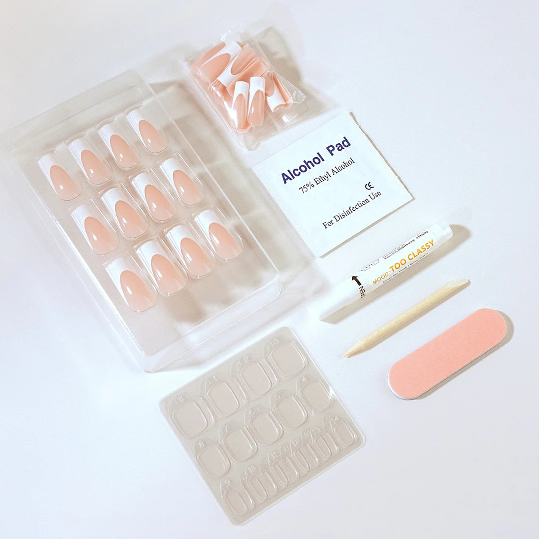 MOOD: TOO CLASSY NAILS bring salon-quality, acrylic-like elegance right to your fingertips. Expertly shaped for a flawless fit, this premium press-on collection extends wear while maintaining a sophisticated look. Perfect for special occasions or everyday confidence, these nails help you achieve a polished, chic manicure effortlessly at home. Elevate your style with MOOD: TOO CLASSY and enjoy lasting beauty with ease.
