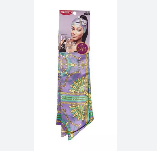 Lay down natural edges and melt lace front hairlines for a super sleek, perfect look! The Red by Kiss Silky Satin Edge Laying Scarf is made of premium silky satin, so it feels gentle on skin and hair. The extra-long 60” length can be tied at your desired tightness and is long enough to tie around twice for extra compression. The 4” width is wide enough to cover a wide hairline or can be folded in half for more detailed work. With 5 fashionable colors and patterns available so you can slay those edges in style! -- Features: