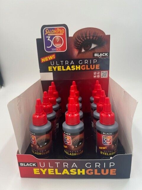 12 PACK SALON PRO 30 SECOND ULTRA GRIP EYELASH GLUE BLACK 2 OZ EACH