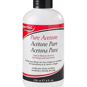 Clean unwanted polish off your nail quickly with SuperNail 100% Pure Acetone. This remover is excellent for removing acrylics, gel polish, nail wraps, polish, and more. Its clear coloring will not stain or damage the nails. This remover is great for at-home or salon manicures. -- Features:
