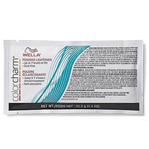 Achieve the lightness you have dreamed of with the Wella Color Charm Powder Lightener Packet. This lightener comes in a 1.1 oz packet, making it easy to measure and travel with. It can lift the hair to 7 levels depending on the hair's condition. This lightener is dust-free, so it will easily apply to the hair without any mess or streaking. It is great for both on the scalp and off the scalp application. For professional use, only this salon-ready lightener will do wonders on the hair. -- Features:
